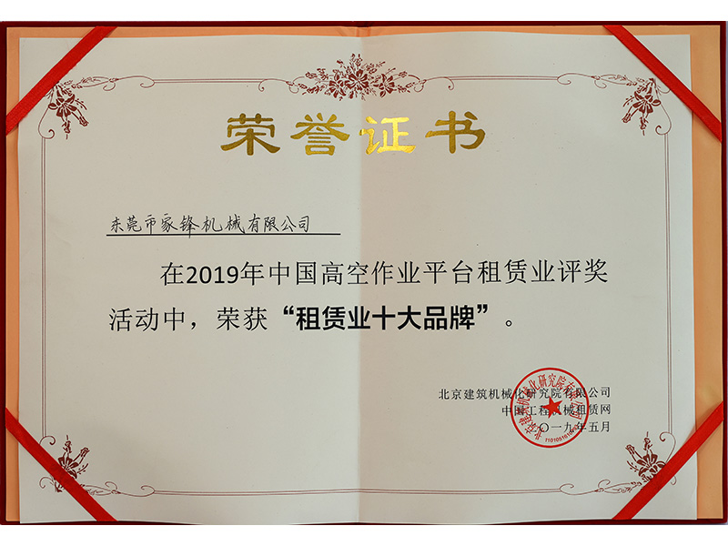 東莞市家鋒機械有限公司成立于2016年,是專業的高空作業平臺租賃、銷售服務商,擁有徐工、中聯、吉尼、捷爾杰等國內外知名品牌的高空作業設備八千多臺,連續四屆榮膺“中國高空作業設備租賃商十強企業”及“中國高空作業平臺租賃業十大品牌”,并于2021年首次榮膺“中國工程機械租賃商十強”,是立足華南、輻射全國、規模大、服務優,極具競爭力和影響力的企業。短短幾年,已相繼與世界機械巨頭徐工集團、中聯重科達成戰略合作。